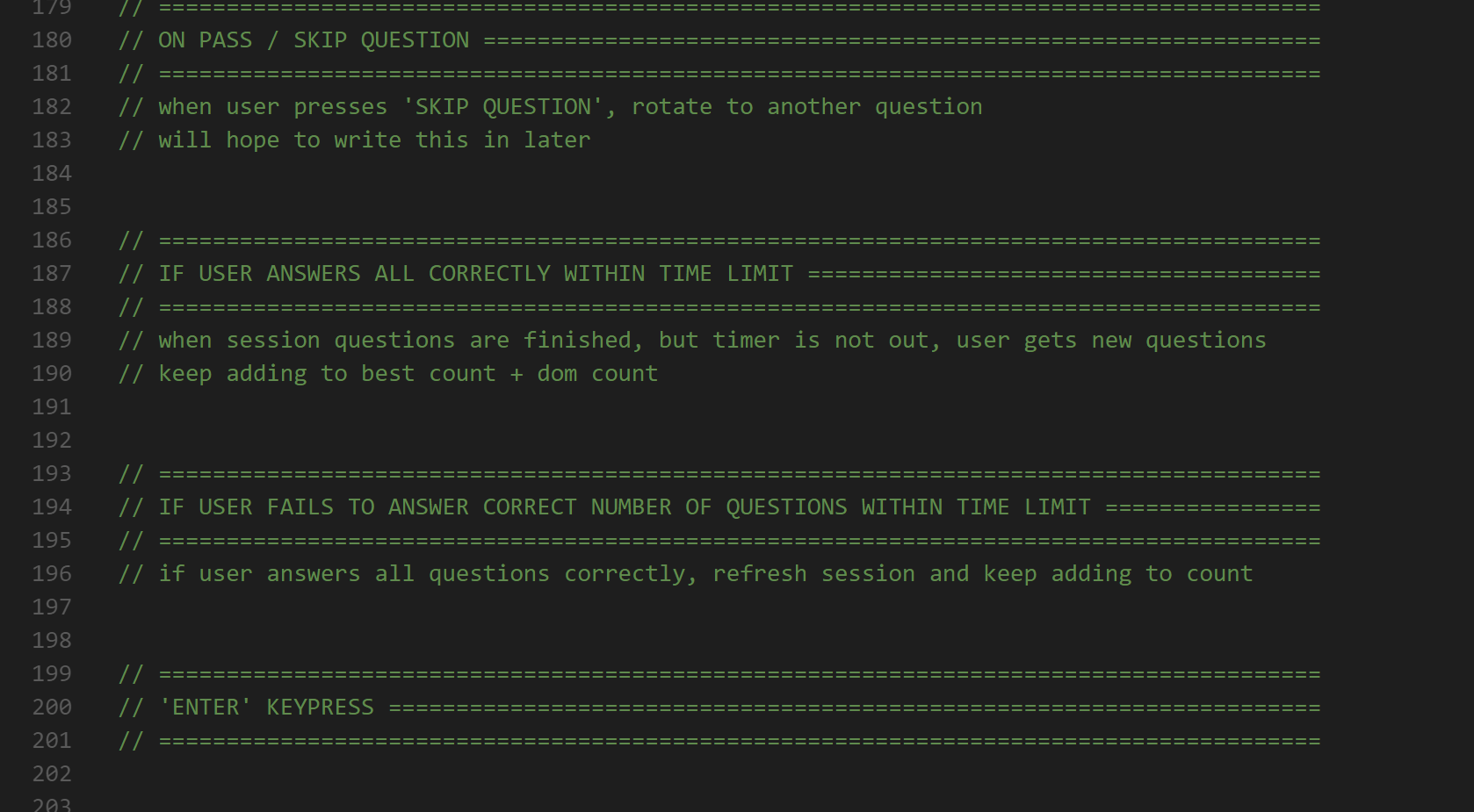 Aside from accessibility, I’d like to add some basic stuff - like scorekeeping, the ability to pass on a question, and unlimited questions during the timer. I don’t plan to attach this to a database anytime soon, however.
