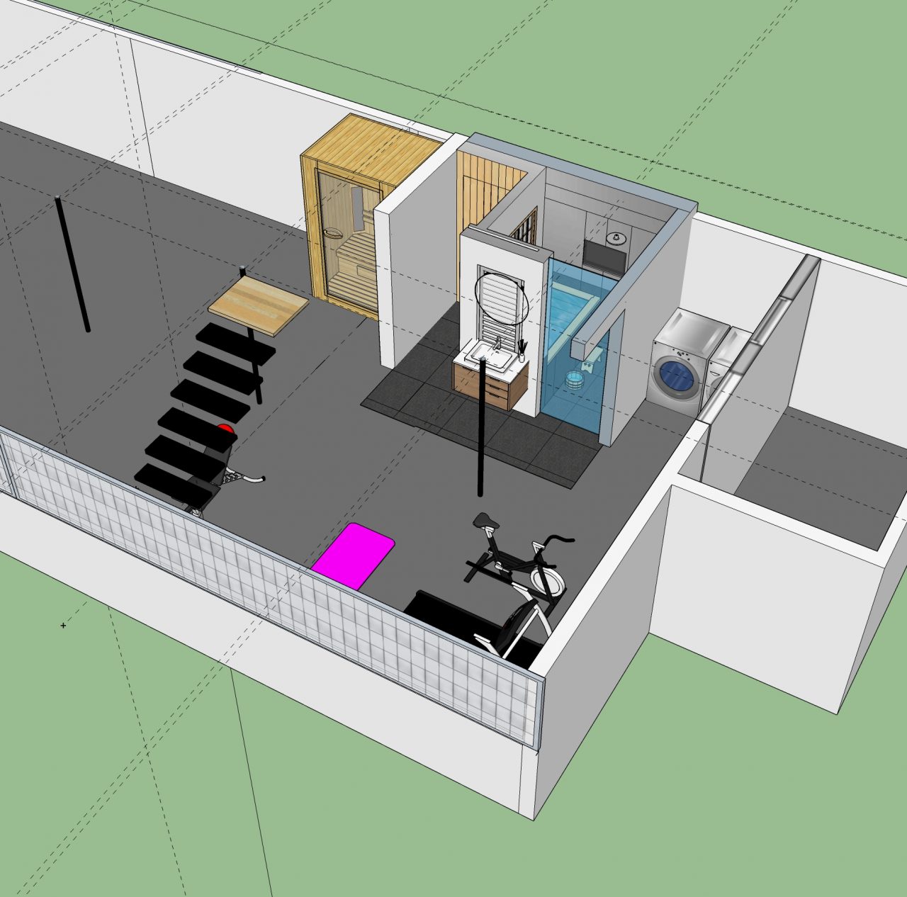 Check out the dope bathroom and home gym I’m daydreaming for our basement :-) I found the SketchUp 3d model depot and went a little hog wild.